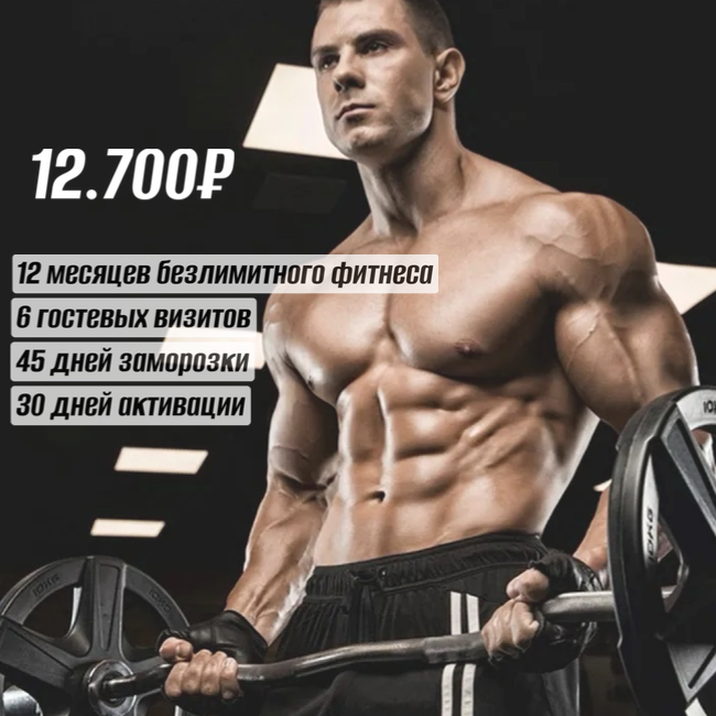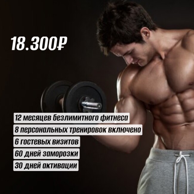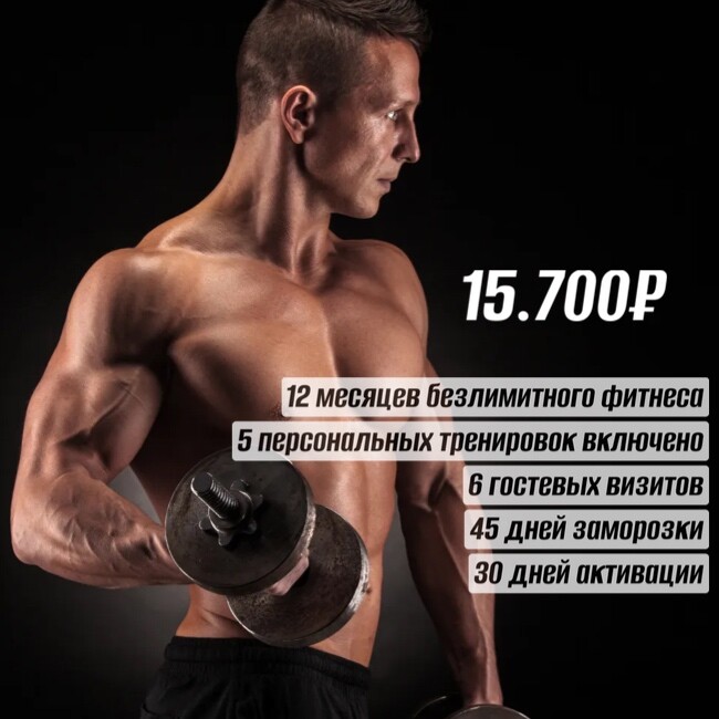 за 12 месяцев безлимитного фитнеса и 8 персональных тренировок